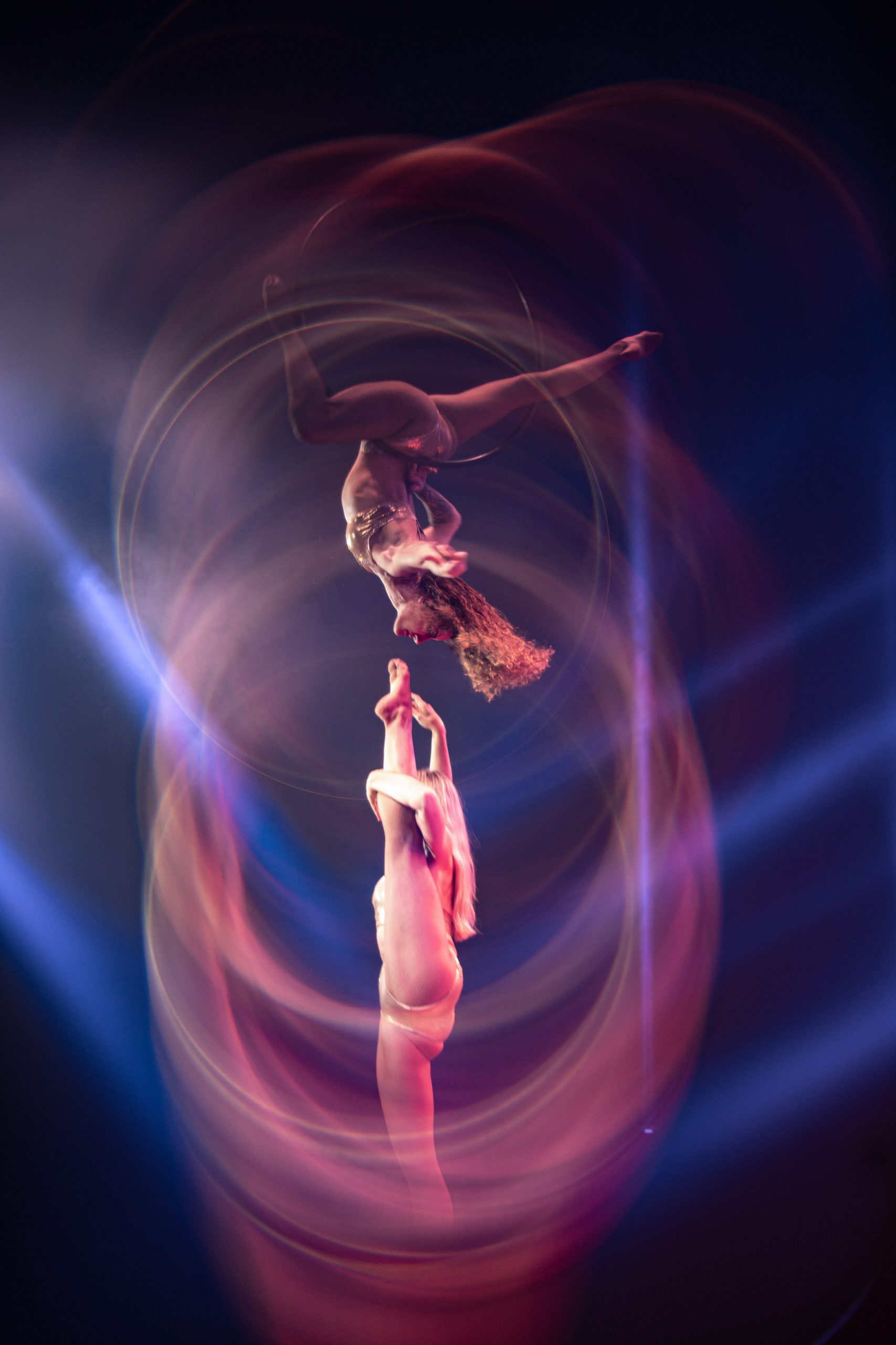 Les SWEET DARKNESS se produisent sur les plus grands plateaux TV et Festivals de Cirque Internationaux. Ce duo aérien partage ses envolées éblouissantes avec le public du monde entier.
